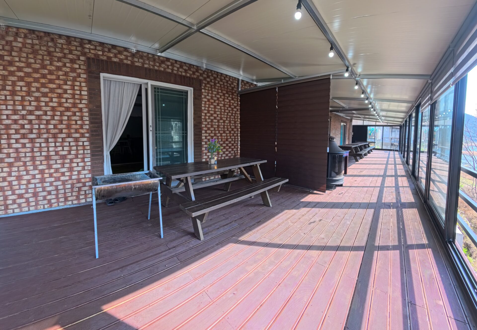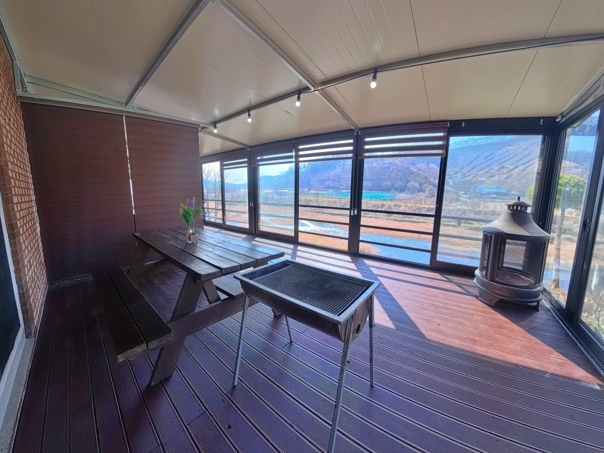싱글침대, 쇼파, 냉장고, 싱크대, 전자레인지, 커피포트, 전기밥솥,선풍기, 테라스, 벤치, TV, 에어컨, 주방기기일체, 드라이기, WiFi, 식탁, 좌식테이블, 전신거울